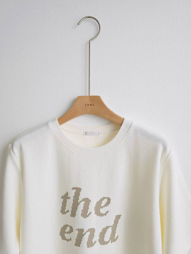 ✔ 英文字樣印花「the end」,極簡中帶點個性