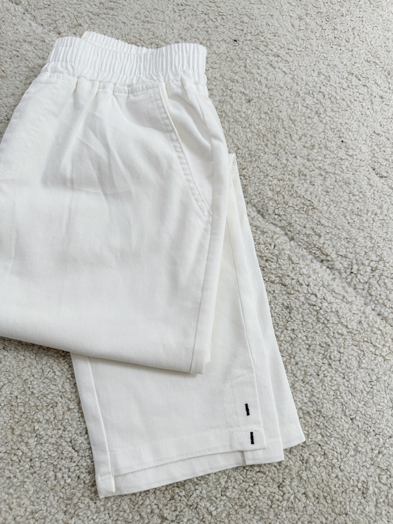 · 褲腳不規則剪裁設計