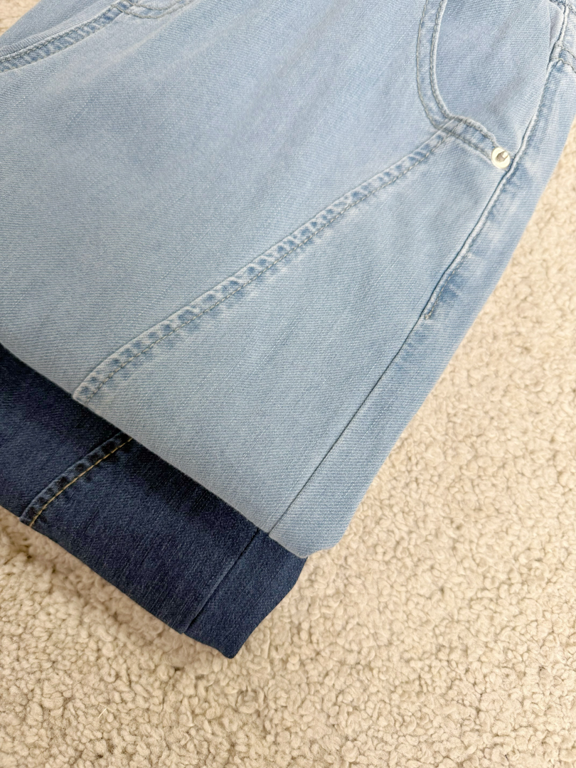 ✔ 柔軟牛仔彈性布料:活動不卡、久坐也不